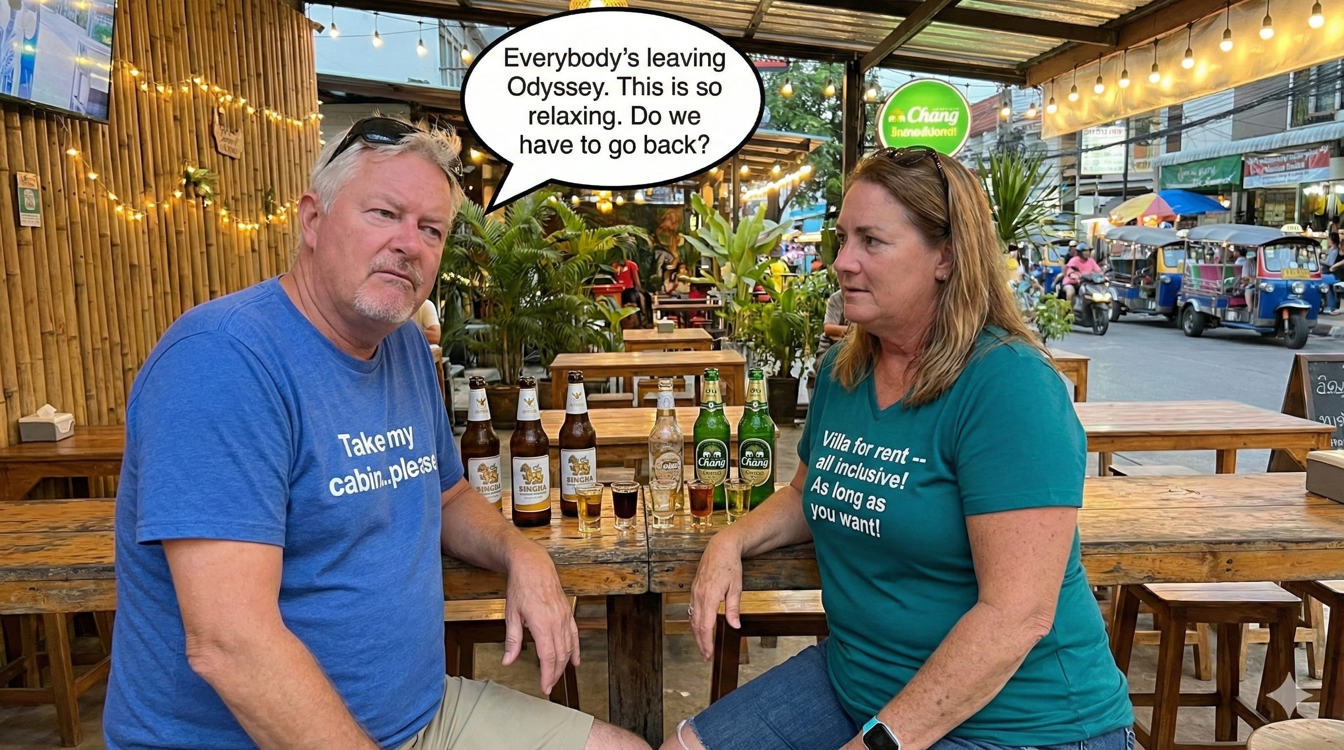 Johan and Lanette said they planned to take an extended break from the ship to explore locations in Southeast Asia…if only they could rent their cabin. Given all that has transpired recently, it’s not hard to imagine a scene like this: