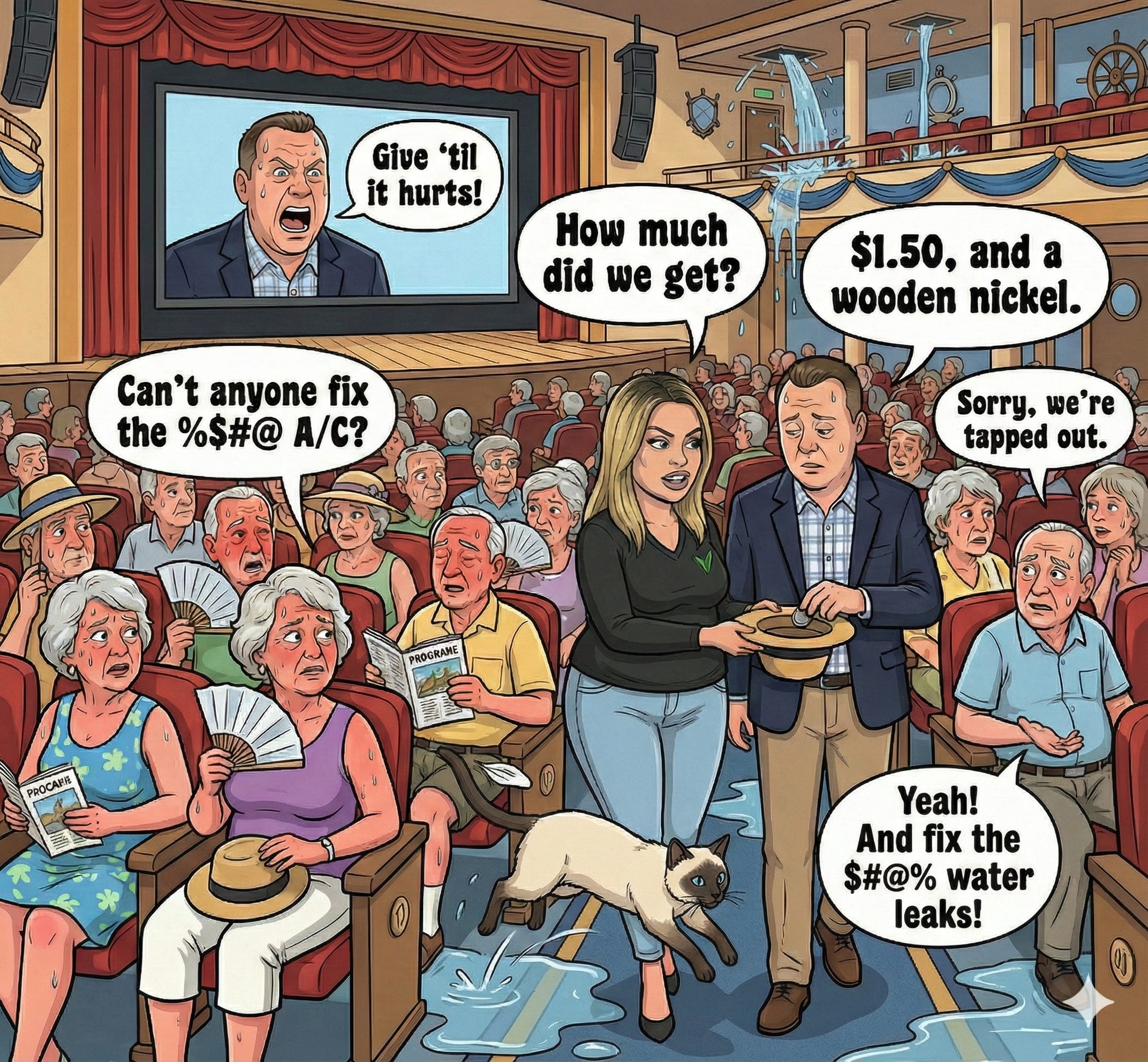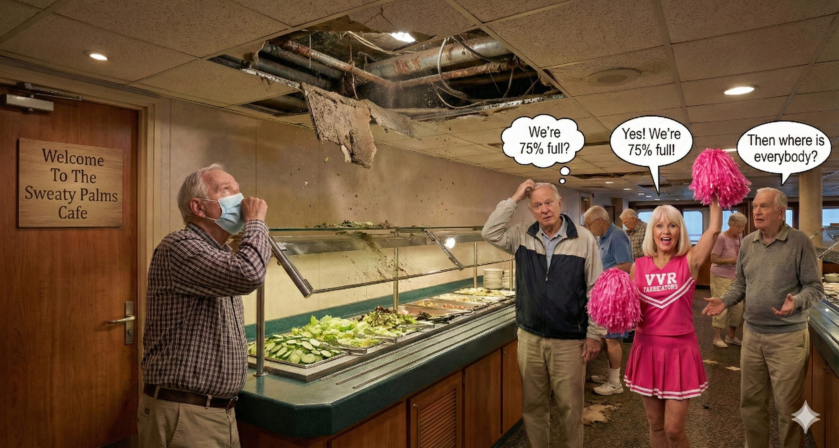 As a lead-in to residents being informed of VVR’s plans for the upcoming “phantom” ship, they were also told that Odyssey is 75% sold. Where have we heard that or similar exaggerations before? According to a January 2024 VVR press release (2 months before closing on the ship was even accomplished):